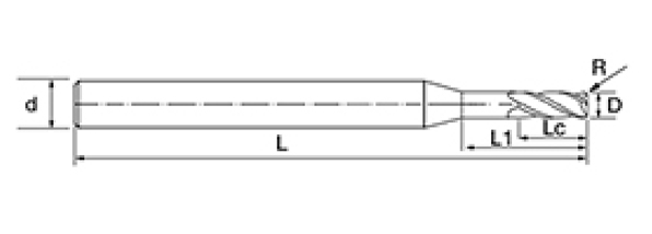 | Dòng công cụ | Đường kính | Bán kính | Bán kính góc | Chiều dài sáo | Chiều dài hiệu quả | Chiều dài tổng thể | Chân Dia | |||