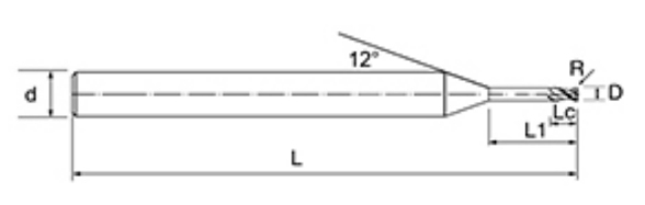 | Dòng công cụ | Đường kính | Bán kính | Bán kính góc | Chiều dài sáo | Chiều dài hiệu quả | chiều dài tổng thể | Chân Dia | |||