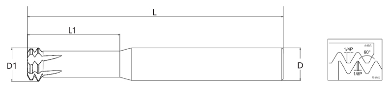 | Cao độ | Răng Thô UNC | Đường kính lưỡi d1 | Đường kính tránh d2 | Chiều dài lưỡi hiệu quả L1 | Đường kính tay cầm D | Chiều dài tổng thể L | Số lượng lưỡi | Đường kính lỗ đáy |